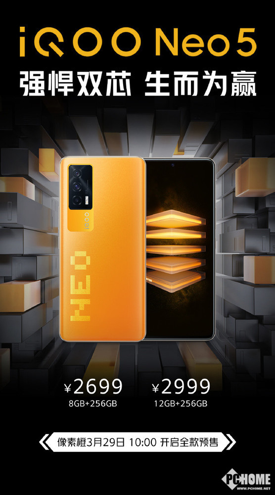iQOO Neo5像素橙于今日上午10点开启全款预售。这款配色相比于夜影黑、云影蓝要更加的亮眼生动一些,且购买该机可享3期免息、送半年延保。