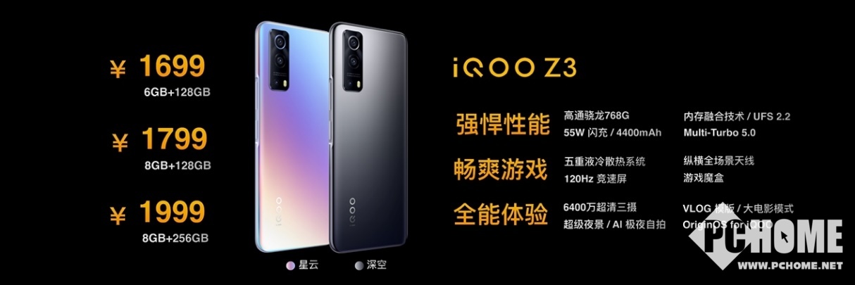 iQOO Z3后盖采用银面离子镀膜工艺,“星云”和“深空”两大配色尽显iQOO对美感与设计上的实力,精美的机身配合上8.5mm的纤薄造型,让人一眼望去就爱不释手;185.5g的重量拿在手中舒适无压力,即便长时间横屏游戏也不显疲劳;影像功能上,iQOO Z3配备6400万超清全场景三摄,支持4K/60fps视频拍摄和多场景拍摄等丰富体验;全新OriginOS for iQOO带来焕然一新的使用和视觉体验。