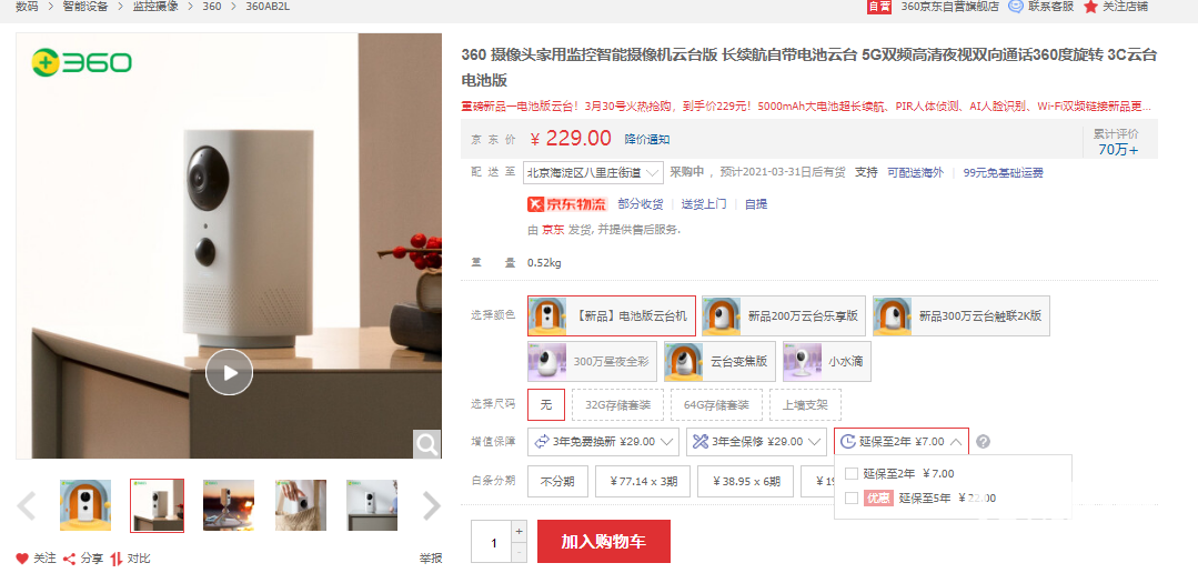 此外,360智能摄像机3C云台电池版支持双向视频、拥有多种安装方式。这款智能摄像机售价229元,感兴趣的朋友可以了解一下。