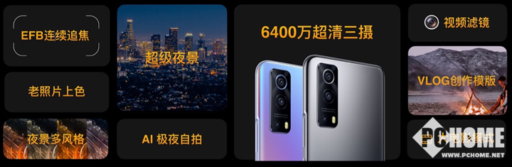 拍摄方面,iQOO Z3搭载了6400万像素超清全场景三摄,支持EFB连续对焦、老照片上色、夜景多风格、超级夜景、AI极夜自拍、视频滤镜、Vlog创作模板以及大电影模式等特色功能,轻松实现全时段拍摄制霸。设计方面,iQOO Z3拥有星云、深空两大配色版本,厚度控制在8.5mm,重量则为185.5g,轻薄质感加持,握持手感极佳。得益于OriginOS for iQOO的强力加持,iQOO Z3能够体验华容网格加持下的行为壁纸、原子组件、原子通知、原子随身听、超级卡包、控制台等功能,简洁交互,悦目悦心。