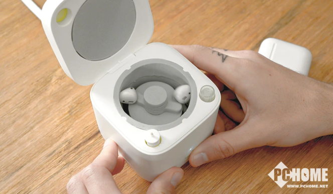 据了解,打开这款机器的盖子之后可以看到一个可以旋转的刷子,可以清理耳机上面的污垢以及缝隙中的灰尘,再往里还有一个类似海绵一样的芯,可以旋转着更加仔细的清理耳机,同时会加入 70%的酒精喷雾。此外,这款机器内部零件也可以进行清洗。