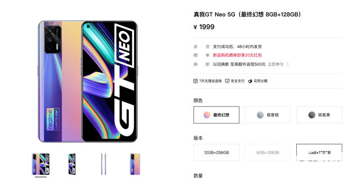 刚刚发布不久的realme 真我GT Neo无疑是很多购机者的首选。realme 真我GT Neo首发6nm制程工艺的天玑1200 5G处理芯片,带来旗舰级澎湃性能表现与高速5G体验。