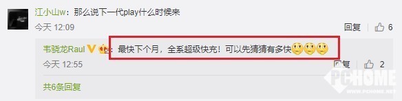 今日,荣耀Play系列产品经理韦骁龙发微博透露:团队为了下一代Play已经进行了几个月深度的用户调研,为的就是给用户带来最能满足使用需求的新品。下一代Play系新品最快下个月亮相,全系支持超级快充。荣耀Play系列机型向来配置均衡,且售价亲民。此次即将亮相的Play新品还全系支持超级快充,相信能够带来更加出色的使用体验。