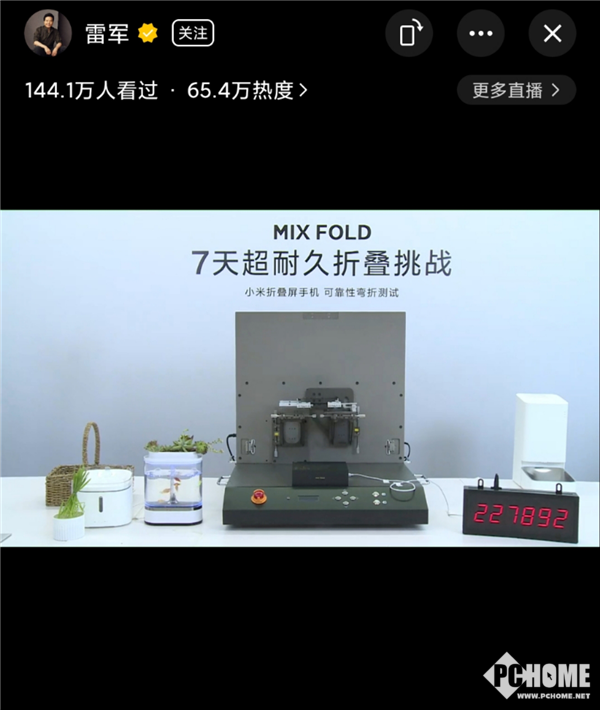目前,小米MIX FOLD暴力折叠测试直播仍在进行中,感兴趣的网友可以通过微信搜索“雷军”视频号观看。