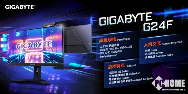技嘉G24F采用23.8英寸的IPS屏幕,分辨率为1080P,是电竞显示器的黄金尺寸,在该尺寸下选手的的视野更集中,更容易专注赛场状态,提升反应能力,避免过大尺寸显示器所带来的画面分散影响发挥等问题。