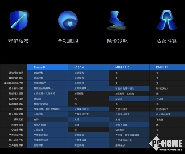 为了更全面、安全地保护用户隐私,Flyme 9加入了四件法宝,包括守护权杖、全视鹰眼、隐形妙靴和私密斗篷,让手机拥有更严苛的权限管理、更全面的应用行为记录、更保密的地理定位和更周密的私密信息保护。
