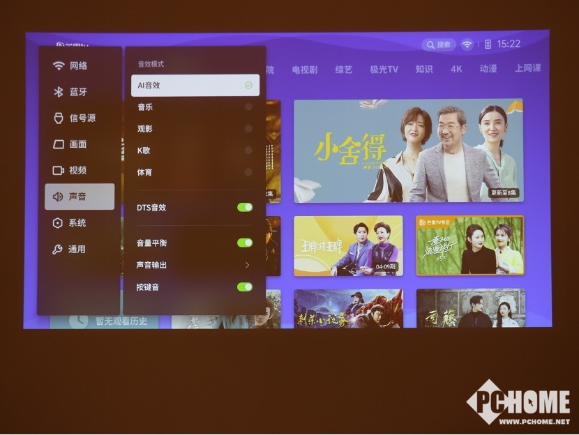 音响方面,我们上边提到了极米RS Pro 2采用的是与哈曼卡顿专为极米RS Pro 2打造的R环专利音响。同时极米RS Pro 2还支持DTS音效+哈曼音效,在设置中我们可以看到有DTS音效的选项,开启后可以享受DTS音效的环绕效果,即便关闭也有哈曼金耳朵团队打造的harman/kardon音效,时刻享受沉浸、环绕、澎湃的声音效果。