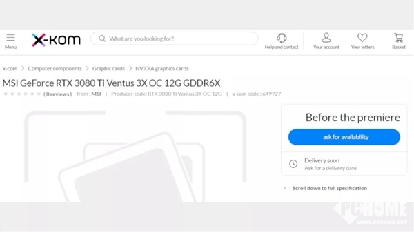 经过了好几次跳票的NVIDIA RTX 3080 Ti终于要落地了!日前在波兰电商X-Kom的网站上,来自微星的RTX 3080 Ti Ventus 3X OC已经悄然上架,配12GB GDDR6X显存,店家提示,即将发货,而且本月中旬也有媒体拍到这款显卡从香港运往洛杉矶。