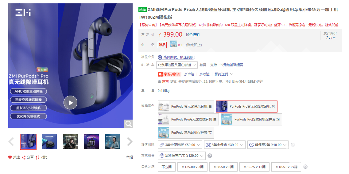 4月27号消息,紫米公司宣布ZMI PurPods Pro真无线耳机曜悦版正式全平台开售,售价399元,采用更加闪耀的黑色设计,更加有质感。