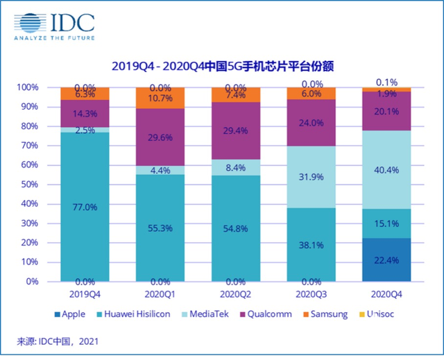 搭载M70基带的天玑系列5G芯片去年四季度市场份额第一(图源网络)