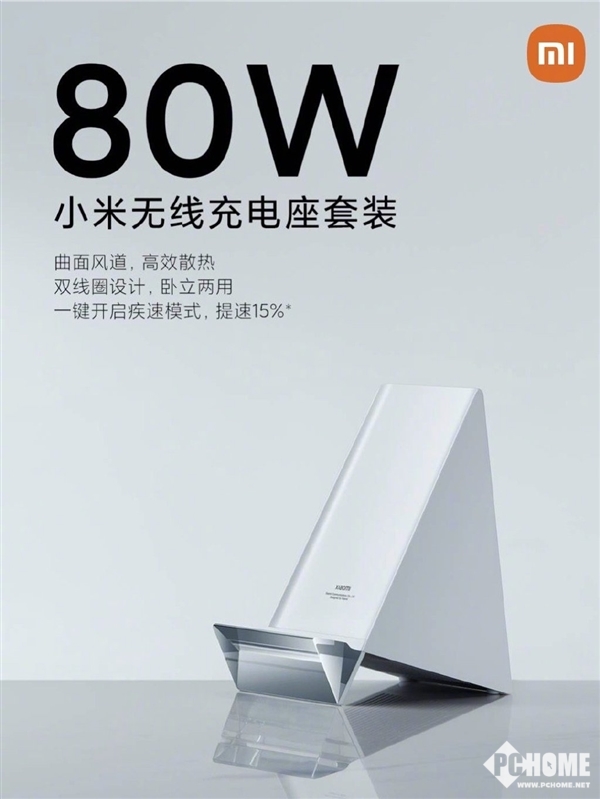 大立柱用于搁置手机,立式结构和双线圈设计无论是横充竖充都能随心充。底部设计有大面积的散热格栅,金属封装,方便散热。小立柱充当支撑散热的效果,其采用曲面风道,高效散热。