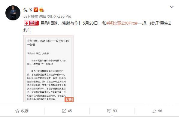 据中兴通讯终端事业部总裁、努比亚技术有限公司总裁倪飞透露,努比亚Z30 Pro已经确定会在5月20日正式发布。