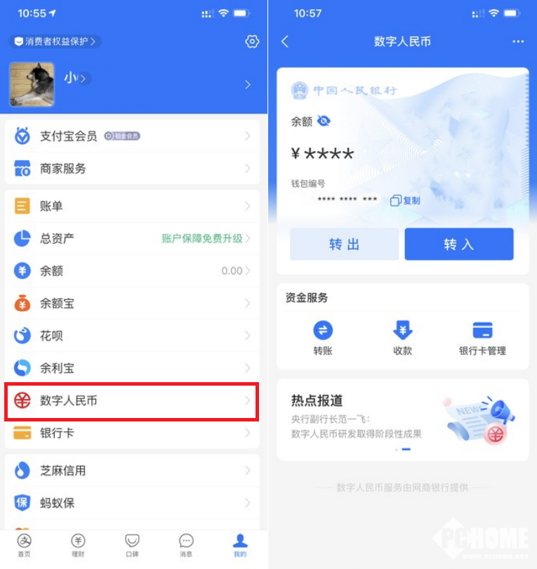 笔者通过数字人民币App来看,目前网商银行(支付宝)的数字人民币在数字人民币App中还暂时无法使用,钱包功能正在开发中。