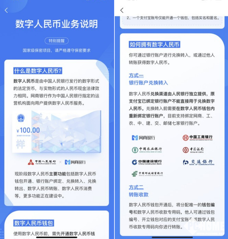 不仅仅是接入支付宝,工、农、中、建、交、邮储六大国有银行数字人民币钱包下均增加了饿了么、盒马鲜生、天猫超市三个子钱包。