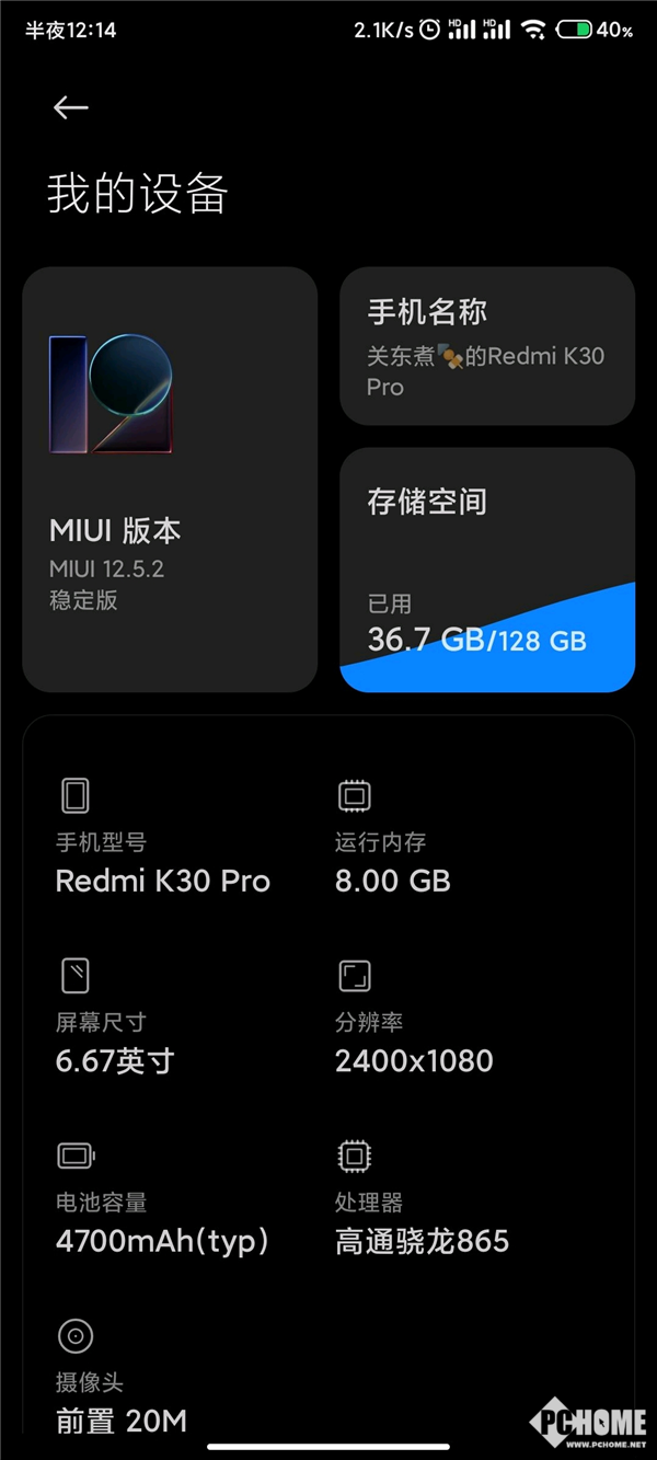 这次K30 Pro更新的是MIUI 12.5稳定内测版,后续会大规模推送给Redmi K30 Pro用户。