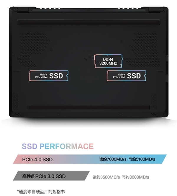标配16GB DDR4-3200内存,预留插槽可升级至40GB;硬盘自带PCIe 4.0 512GB SSD,可选配1TB,额外预留一个M.2,支持RAID 0。