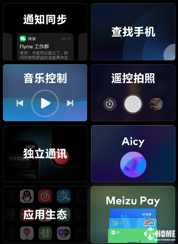 魅族介绍Flyme for Watch拥有多项功能,比如通知同步、手表手机双向查找、音乐控制、门禁交通卡、遥控拍照、独立通讯等等,为用户带来更加便捷的智能服务,让生活更加智慧。