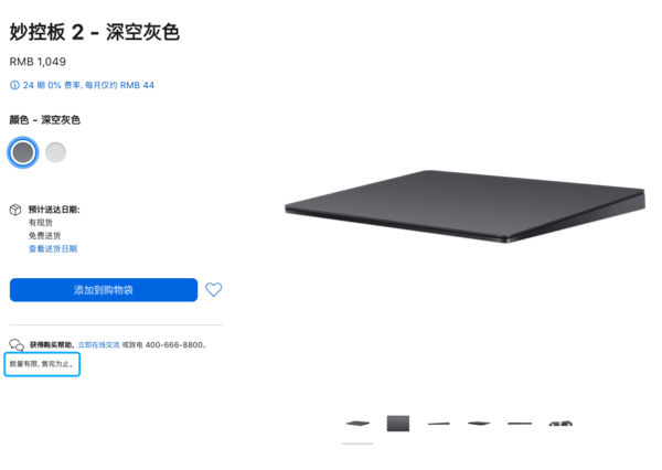 值得一提的是,深空灰色的配件在售价上也比银白色版略贵,例如银色的妙控板2售价为899元,但深空灰色的妙控板2售价则为1049元,二者仅仅是配色不同,功能无任何差别。