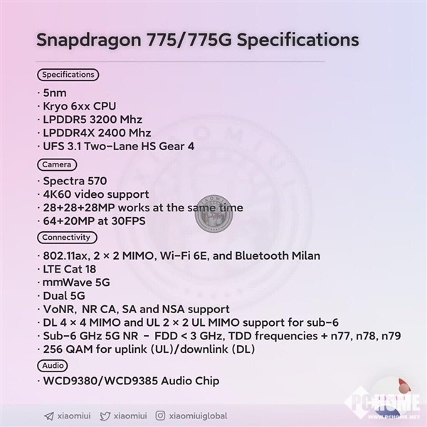 同时,骁龙775G或将支持LPDDR5内存及UFS 3.1闪存。
