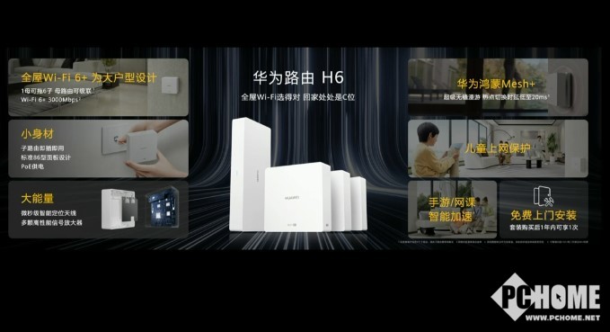 5月19号消息,华为全场景智慧生活发布会正式举行,千兆级全屋Wi-Fi路由——华为路由H6正式发布,具备高速全覆盖、易用性佳、组网高效等等特点。华为路由H6将在今晚6点08份正式开售,售价1999元。
