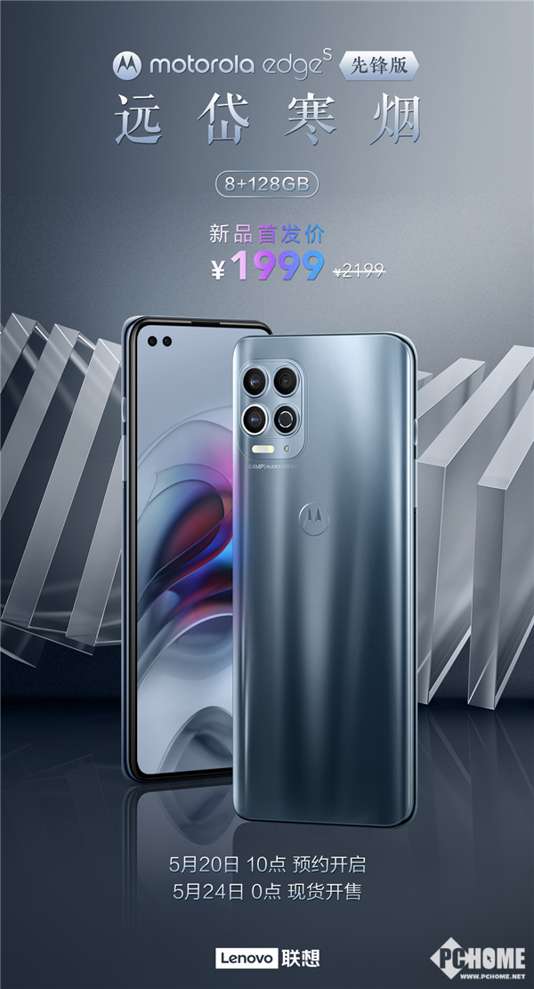除翡色琉光、雪霁初晴这两款配色以外,今日摩托罗拉宣布上架摩托罗拉edge s远岱寒烟版,该机现已在各大平台开启预约,将于5月24日零点正式现货开售。摩托罗拉edge s不仅是全球首款高通骁龙870旗舰手机,还搭载了AI全能前后六摄。