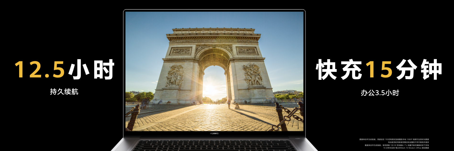 电池续航方面,华为MateBook 16拥有84 Wh(额定容量)大容量电池,根据华为实验室数据,可连续播放本地1080P视频12.5小时 ;135W的大功率充电器,充电15分钟办公3.5小时,(来自华为实验室数据)还可以为部分华为手机、平板电脑等支持华为超级快充协议的产品进行超级快充,一充多用,满足商旅人士给多台产品充电的需要。