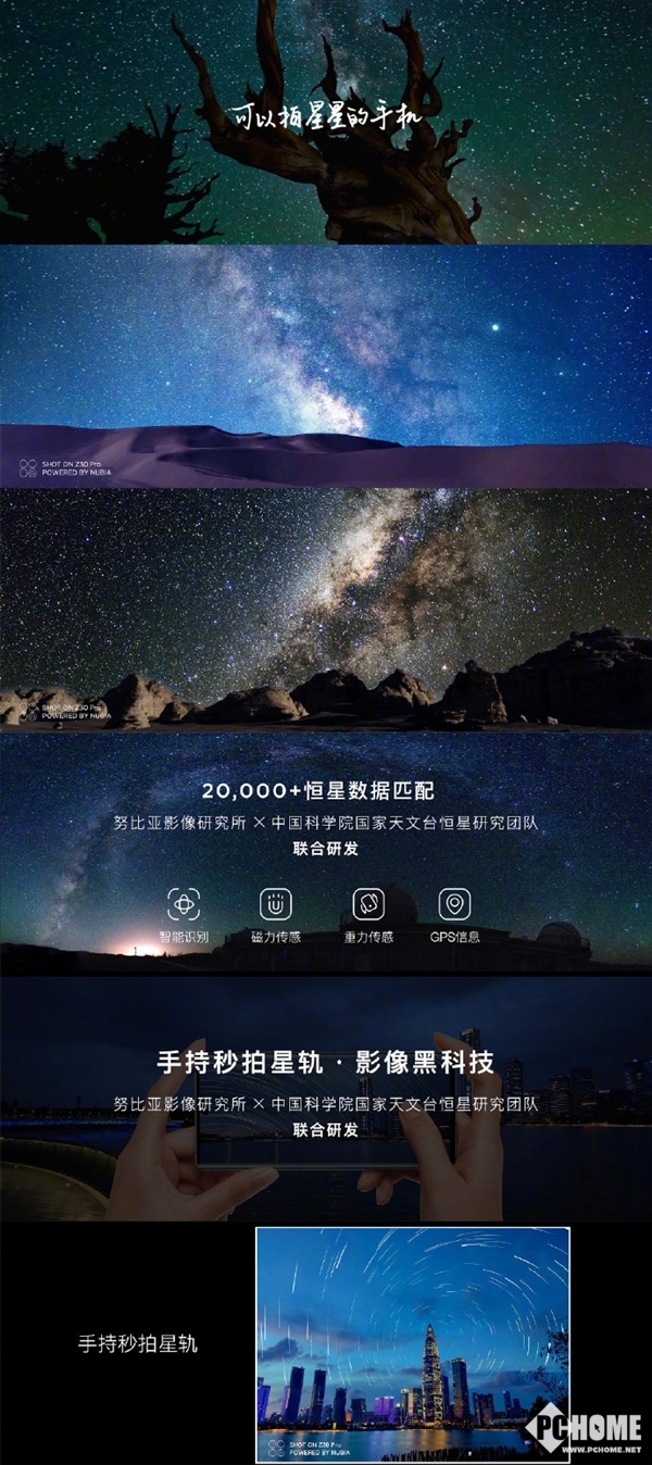 努比亚表示,旗下的影像研究所中国科学院国家天文台恒星研究团队联合研发了这一技术,超20000+恒星云端大数据,基于GPS、磁力重力传感等智能AI算法,只要识别天空,无需三脚架即可秒拍绚丽星轨。