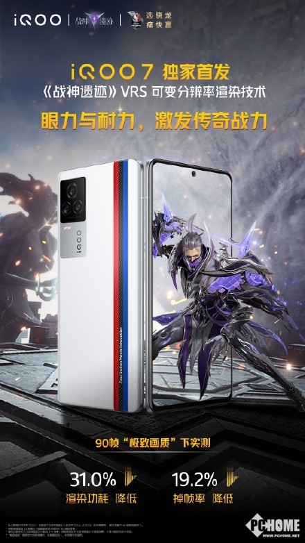 【PChome手机频道资讯报道】近日,iQOO、高通技术公司、完美世界游戏三方共同宣布:搭载高通骁龙888™移动平台的iQOO7旗舰智能手机,实现了手游大作《战神遗迹》可变分辨率渲染(Variable Rate Shading,VRS)的独家首发,据悉该技术可以让玩家在规模宏大、细节精致的多元宇宙中,享受高画质、高帧率、低延迟、低能耗的绝佳游戏体验,一战成神,持久畅玩。