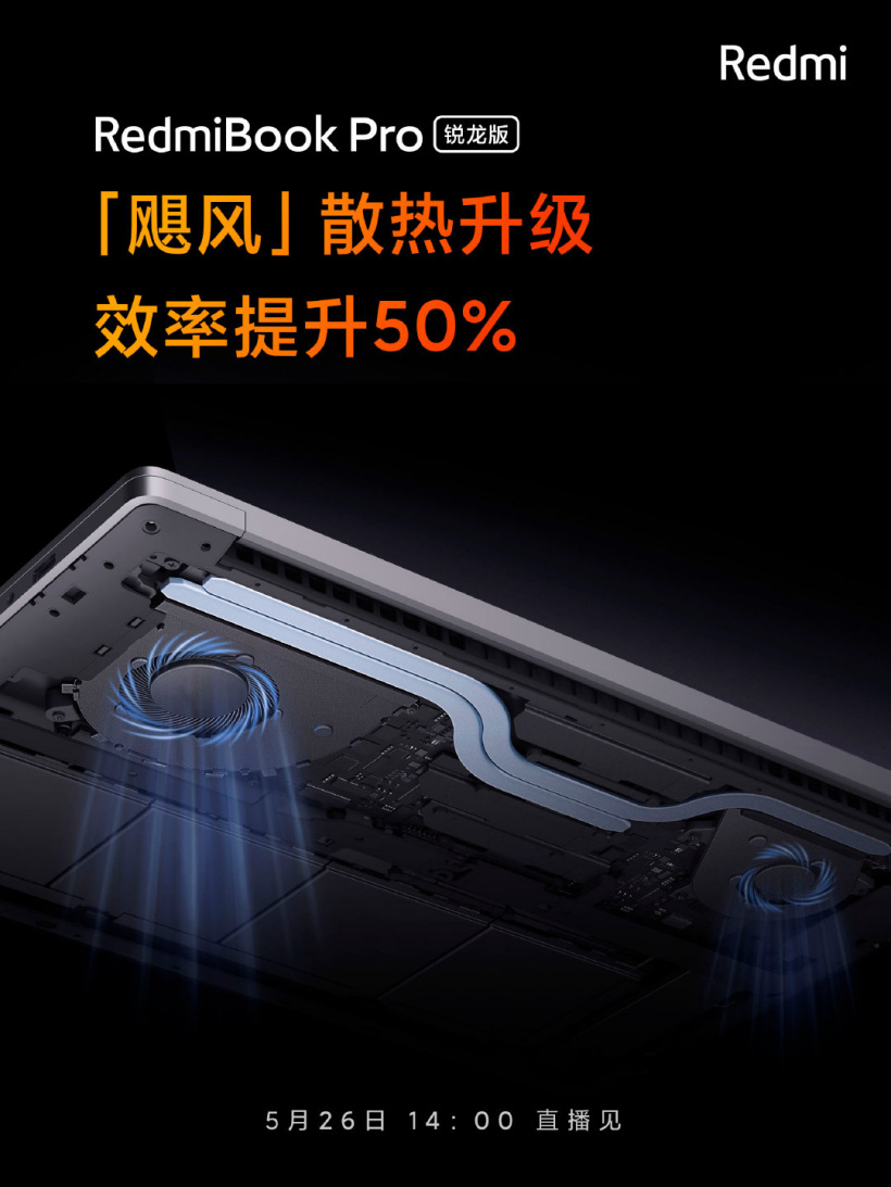 近日,官方已宣布RedmiBook Pro系列首款轻薄锐龙本 ——RedmiBook Pro锐龙版将于5月26日发布,搭载全新Zen3架构锐龙5000标压处理器,拥有全新升级的「飓风」散热系统,散热效率提升50%。