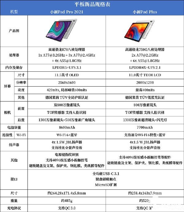 除了小新Pad Pro 2021,还有一款小新Pad Plus也将今晚发布。