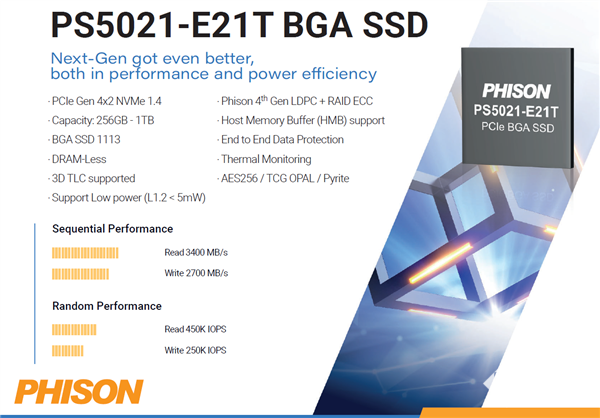 适合主流电竞游戏PC与NB的DRAM-Less PS5021-E21T Gen4 SSD储存方案