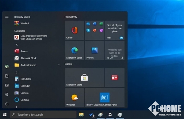 在内部版本中,微软似乎正在测试全新的开始菜单,新的开始菜单和现在有明显不同,开始按钮变得更具缤纷多彩,就如现在Win10中的一些动画改进一样。