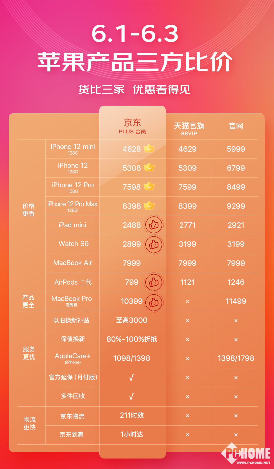 具体有多划算?如果想要在京东618购买一款128GB版的iPhone12,官网售价6799元,京东领取1000元的优惠之后,到手只需5708元,京东PLUS会员到手价5308元;如果想购128G 版iPhone 12 Pro Max,官网售价9299元,京东618促销价9198元,领券可减400元,到手价8798元,京东PLUS会员到手价仅需8398元。