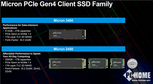 这次,美光发布了3400、2450两个系列产品(命名就是这么简单暴力),使用的都是自家176层闪存。