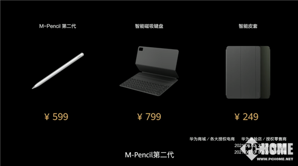 HUAWEI M-Pencil(第二代)售价则为599元,智能磁吸键盘售价为799元,智能皮套249元,将与MatePad Pro 12.6同期开售。