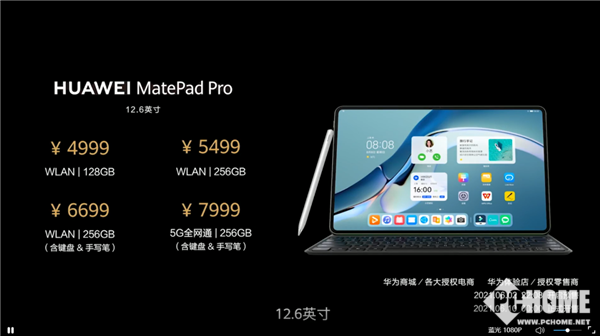 价格方面,华为MatePad Pro 12.6英寸共推出了两种版本,其中WLAN版搭载麒麟9000E处理器,5G版则搭载麒麟9000处理器,WLAN 128GB版售价为4999元、WLAN 128GB版售价为5499元、5G 256GB版售价为7999元(包含键盘+手写笔),将今晚开启预约,并将在6月10日正式开售。