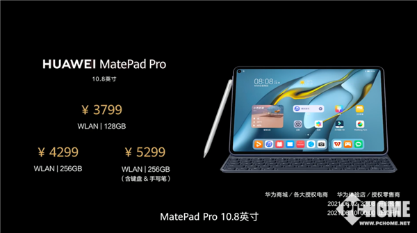 价格方面,华为MatePad Pro 10.8共推出三种版本,其中128GB售价3799元、256GB售价4299元、256GB(包含键盘+手写笔)售价5299元,同样会在今晚开启预约,并将在6月10日正式开售。