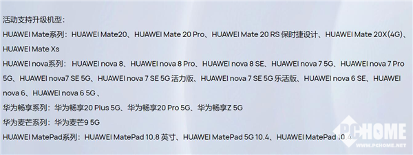 活动支持升级机型包括,华为Mate系列、华为nova系列、华为畅享系列、华为麦芒系列以及华为MatePad系列。