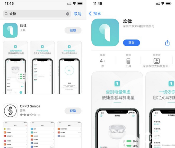 OPPO的欢律App可以控制耳机的降噪模式、查看耳机电量、调整耳机的操控方式等等,之前欢律App仅支持安卓手机下载使用,目前iOS版本欢律App也上线了,苹果用户也能享受更加便捷的操作体验。
