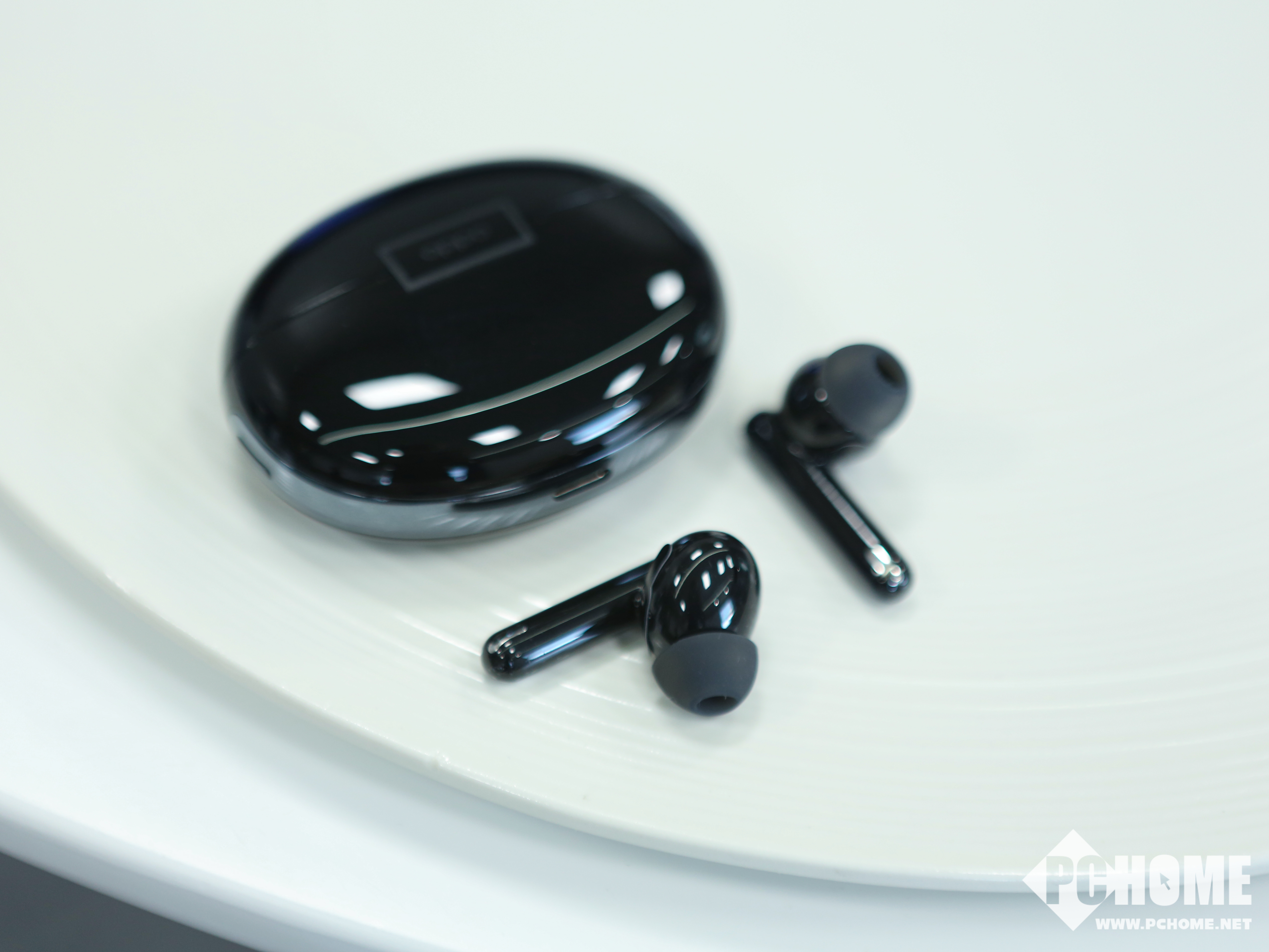 OPPO Enco Free2充电盒延续了OPPO Enco X的椭圆形鹅卵石设计,握在手心非常圆润,握感舒适。