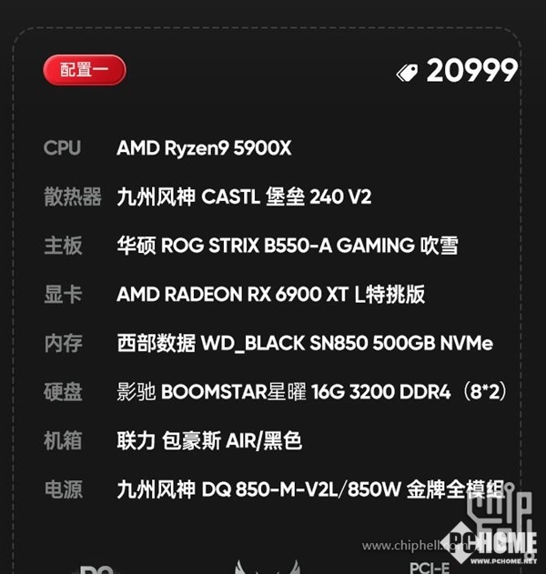 国内某2.1万元的整机中,显卡标注是一块AMD RX 6900 XTL特挑版,也叫RX 6900 XT LC水冷版,看渲染图也是典型的AMD公版设计风格。