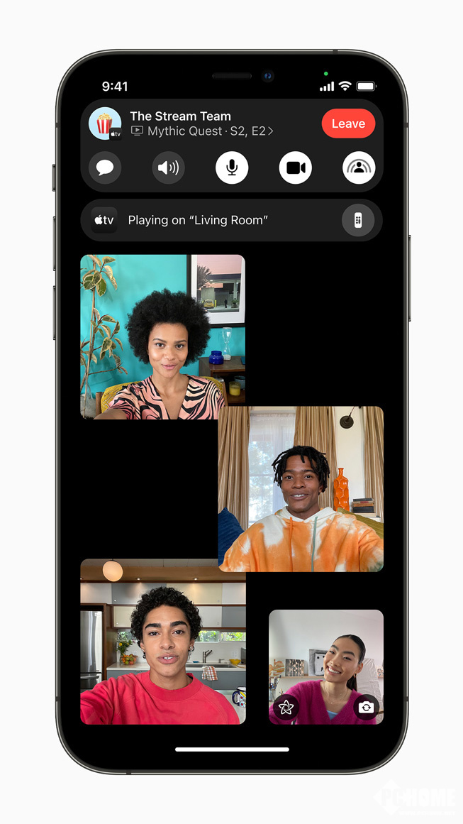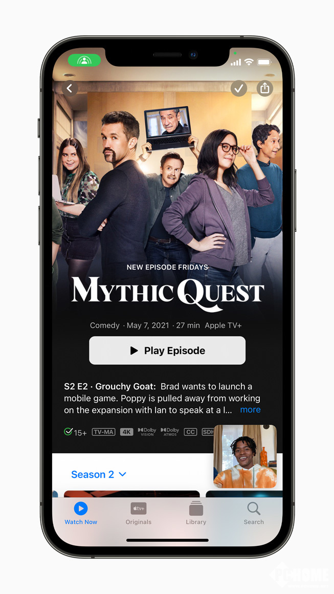 通过 SharePlay,用户可以在与朋友进行 FaceTime 视频通话时共享体验,包括同步在 Apple TV 上观看电视节目或电影,或者通过屏幕共享来一起查看 app。
