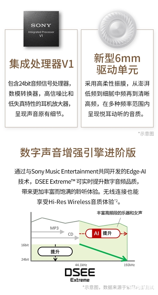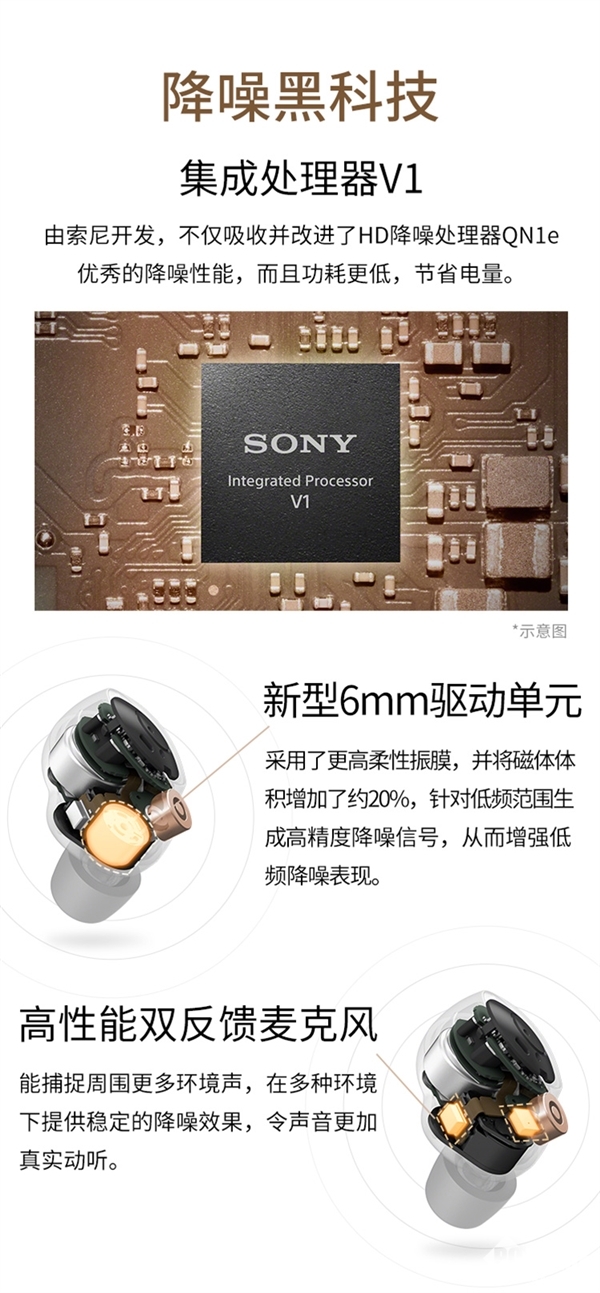作为主打降噪效果的一款真无线耳机,索尼WF-1000XM4的降噪性能进一步提升,升级了索尼自研的V1处理器,相比此前降噪能力提高了40%,并且对高频的降噪能力得到了有效提升,同时还能自动检测风噪。