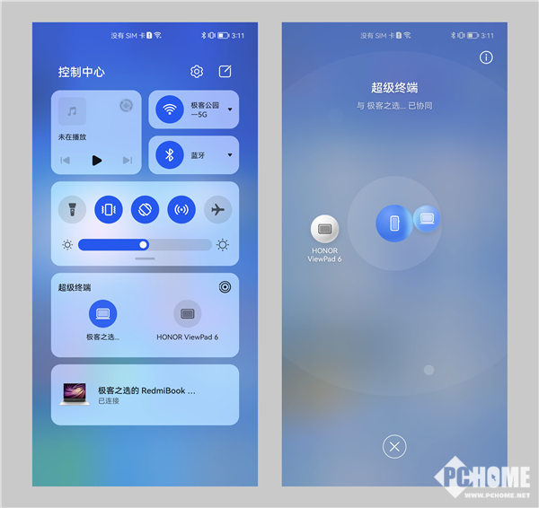 3. 打开华为电脑管家,在手机的「控制中心-超级终端」中搜索设备