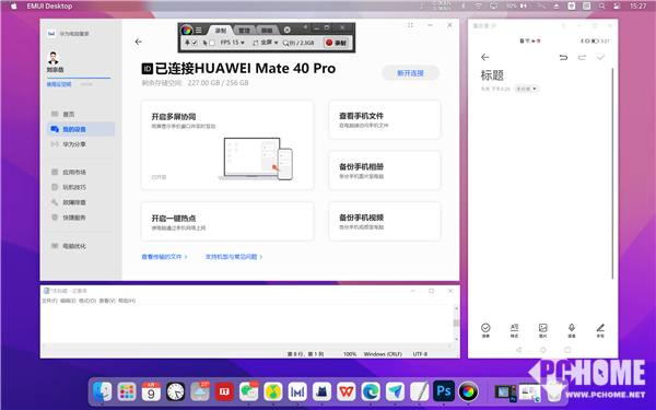 华为的多屏协同还有很多功能和玩法,比如在电脑上接打电话、利用华为分享对手机文件进行管理和备份;而在手机一端,还可以对电脑桌面进行截屏或录屏。