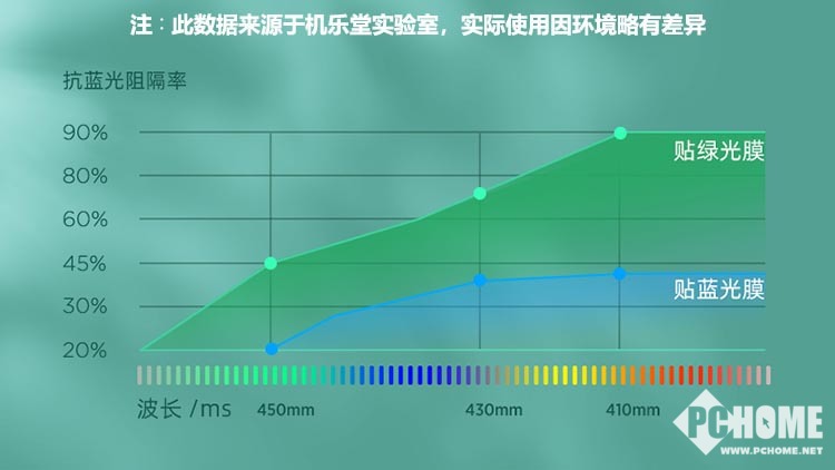 对比蓝光膜,绿光膜对蓝光的吸收效果要更好。