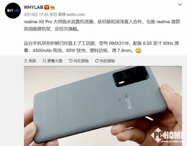 此外,根据网络上的消息,除了常规版的realme X9系列,此次realme很可能还会带来realme X9 Pro 大师版。据悉,realme X9 Pro 大师版将依然和深泽直人合作,后盖为哑光的水泥灰配色。