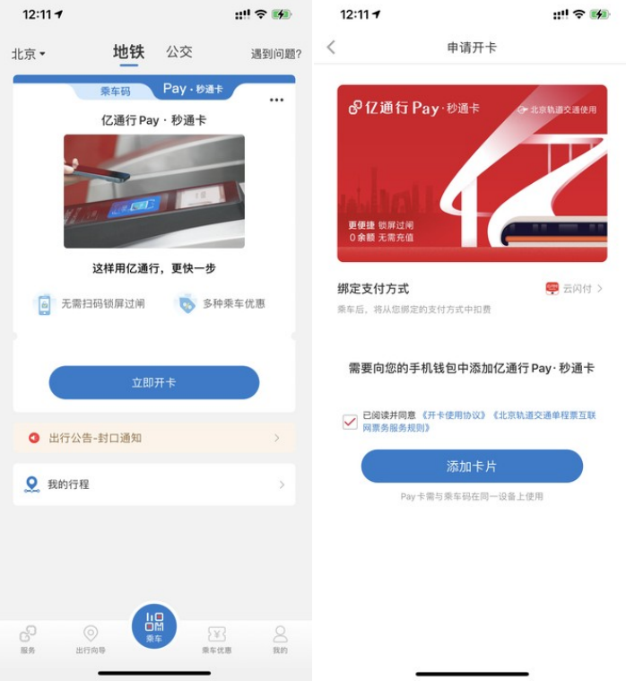 值得注意的是,使用亿通行“Pay·秒通卡”进出站,不需要解锁手机,也不需要充值,绑定支付宝微信以后就可以先乘后付了。“Pay·秒通卡”结合了手机App刷码进站和NFC进站的优点,可以说非常方便。