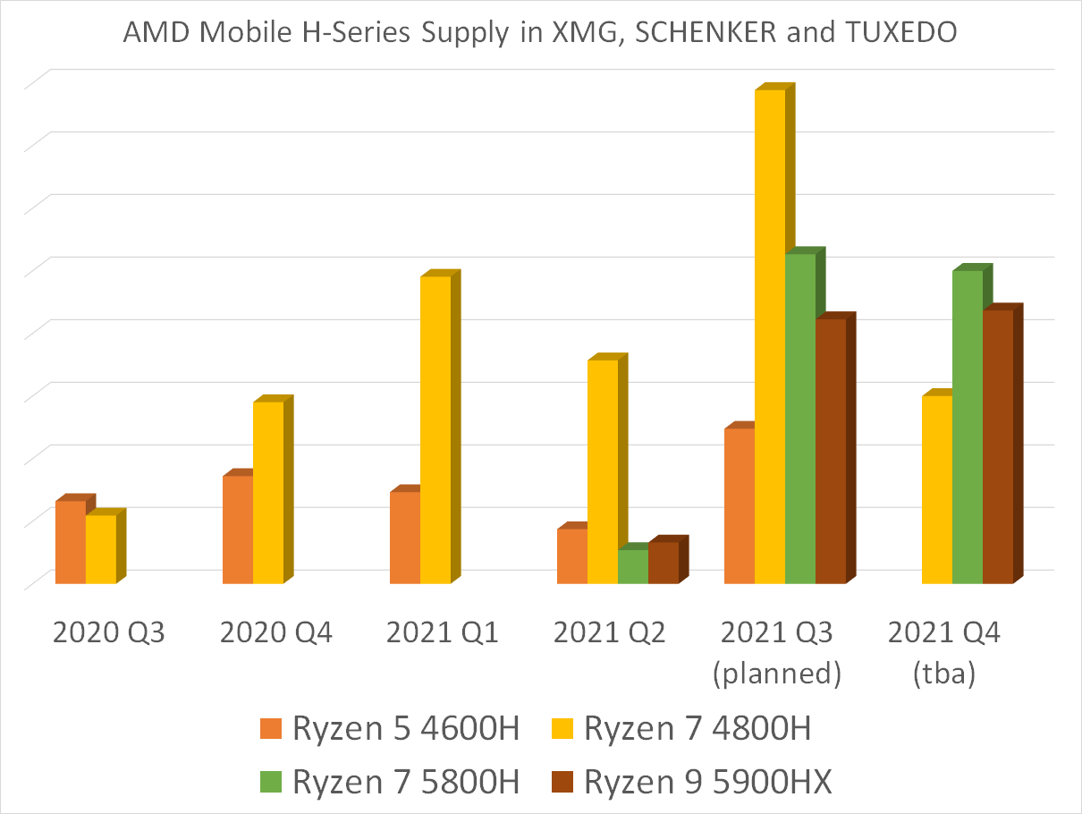 锐龙处理器曾在二季度出现供货严重不足的情况,锐龙4000H处理器数量稀少,锐龙5000H处理器更是拿不到货。