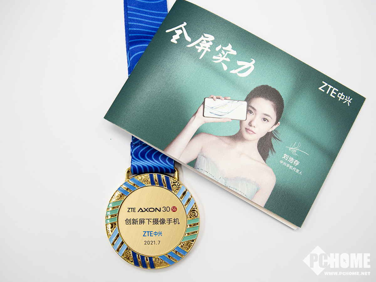 打开邀请函,我们可以看到刘浩存的海报以及一个很有质感的奖牌,这再一次告诉我们,中兴 Axon 30将是“创新屏下摄像手机”。